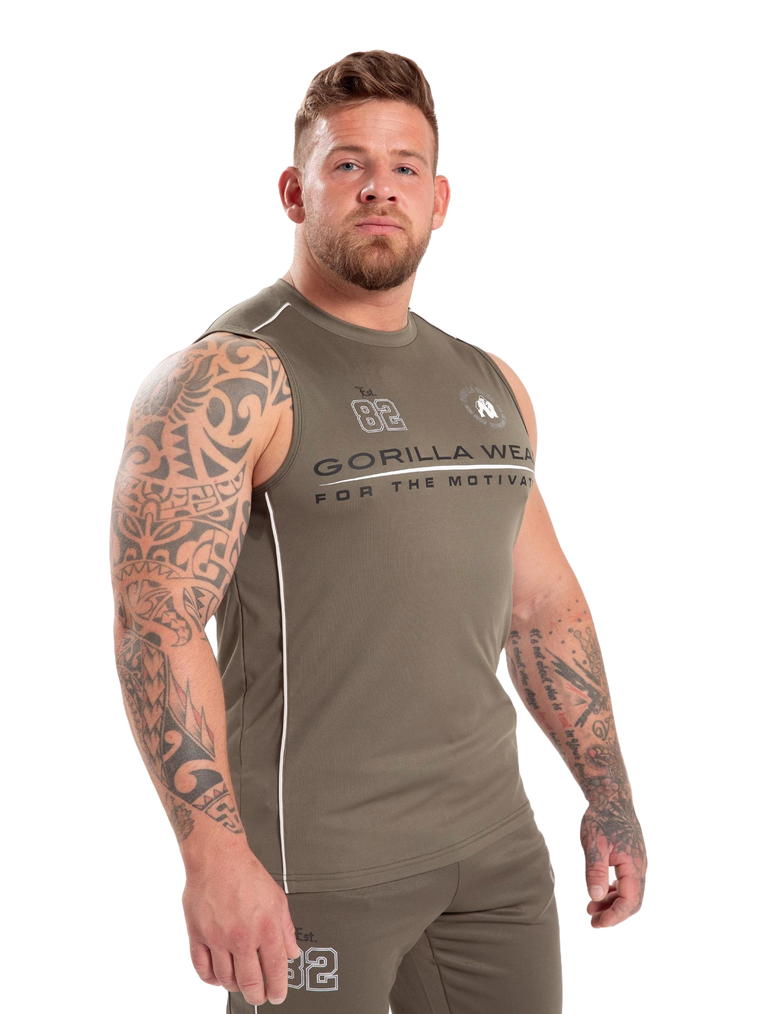 Broxton Tank Top är en del av en 4-delad kollektion bestående av: Broxton T-shirt, Broxton Shorts och Broxton Track Pants. Finns i två olika färger: black och army green.
