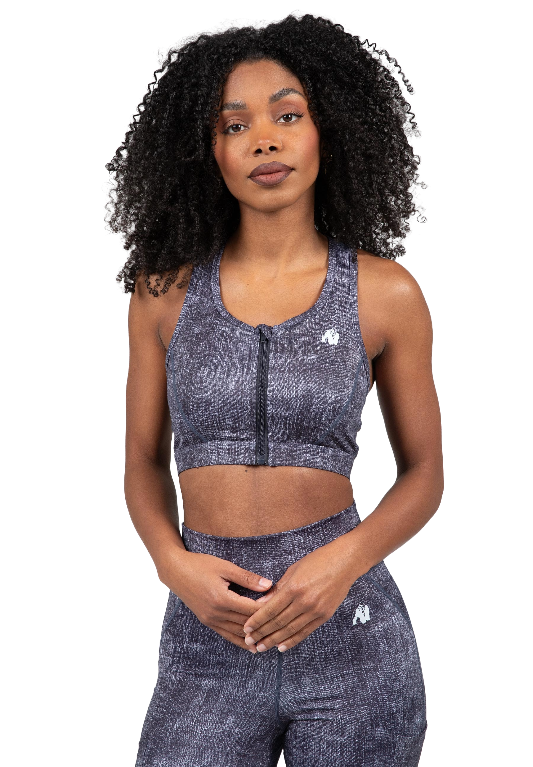 Gorilla Wear Camilla Zip-Front Sports Bra, blue denim