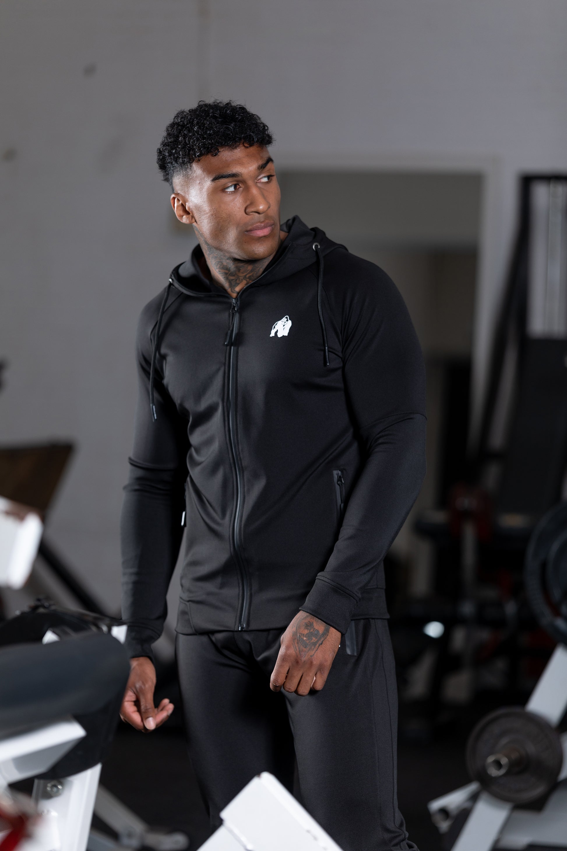 Sullivan är en riktig blickfångare med sportig look och superbekvämt material i polyester/spandex mix, perfekt för både tuffa träningspass och off days. Jackan har en bekväm passform med stretch för full flexibilitet oavsett aktivitet. Materialet är slitstarkt och håller dig varm samtidigt som det släpper igenom fukt. Sullivan Track Jacket har GW logo på bröstet, praktiska fickor med dragkedja, hög krage och huva med dragsnöre. Kombinera gärna med Sullivan Track Pants för en komplett outfit. Finns i färgerna svart och grått.