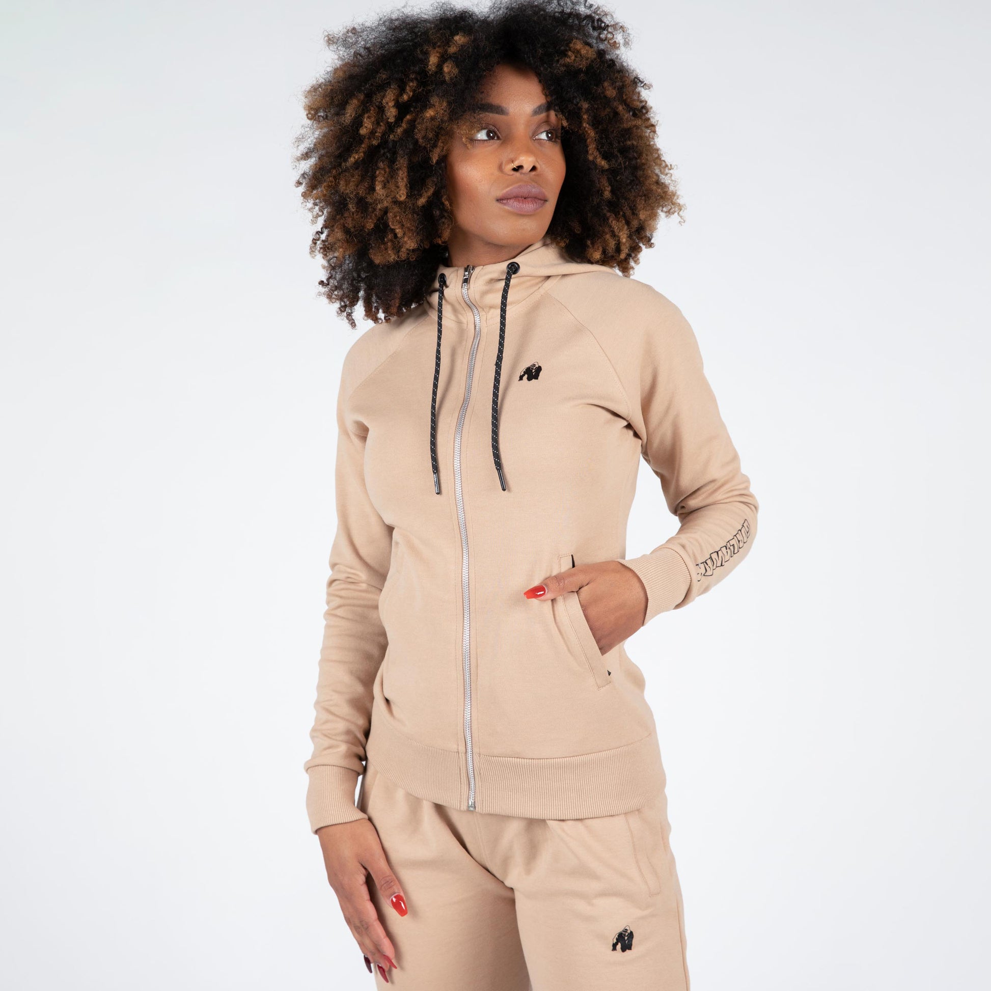 Marion Zipped Hoodie är tillverkad i en mjuk och behaglig mix av bomull/polyester och passar perfekt för att hålla dig varm före, under och efter träning liksom en skön vilodag. Hoodien har en bekväm passform med sportig look och matchande byxor, allt för att du ska känna dig bekväm oavsett aktivitet. Huvan kan enkelt justeras tack vare dragsnöret och fickor med dragkedja säkerställer att du kan förvara dina tillhörigheter säkert. Perfekt dress för olika aktiviteter både på och utanför gymmet. Finns i färgerna svart och beige.