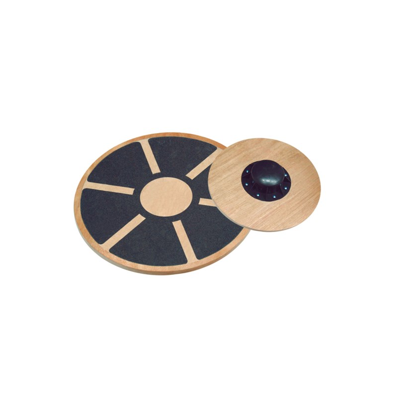 En kraftig balansplatta i trä med en bra greppyta för undvika att man halkar.