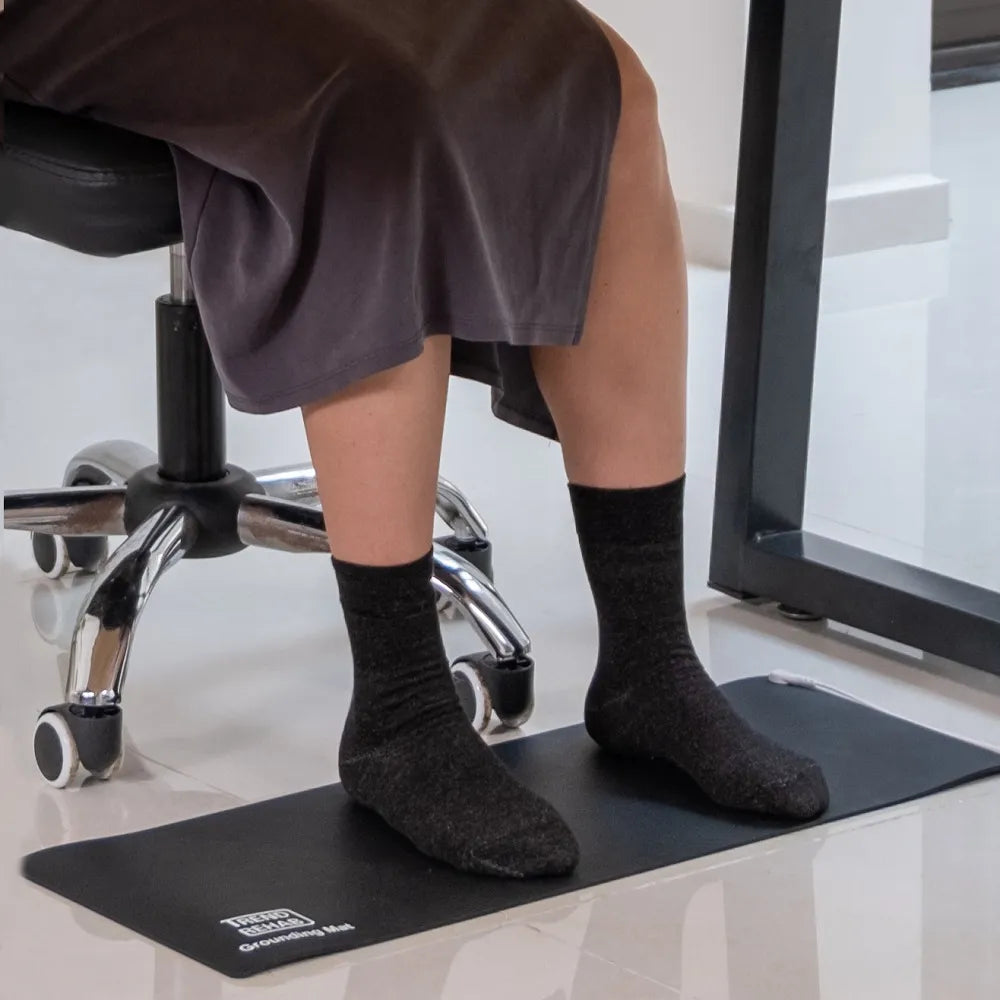 Om du använder jordningsprodukter som lakan eller matta hemma, leder silversockarna elektroner från jorden upp till kroppen – även med tunna bomullsdukar eller lakan emellan.