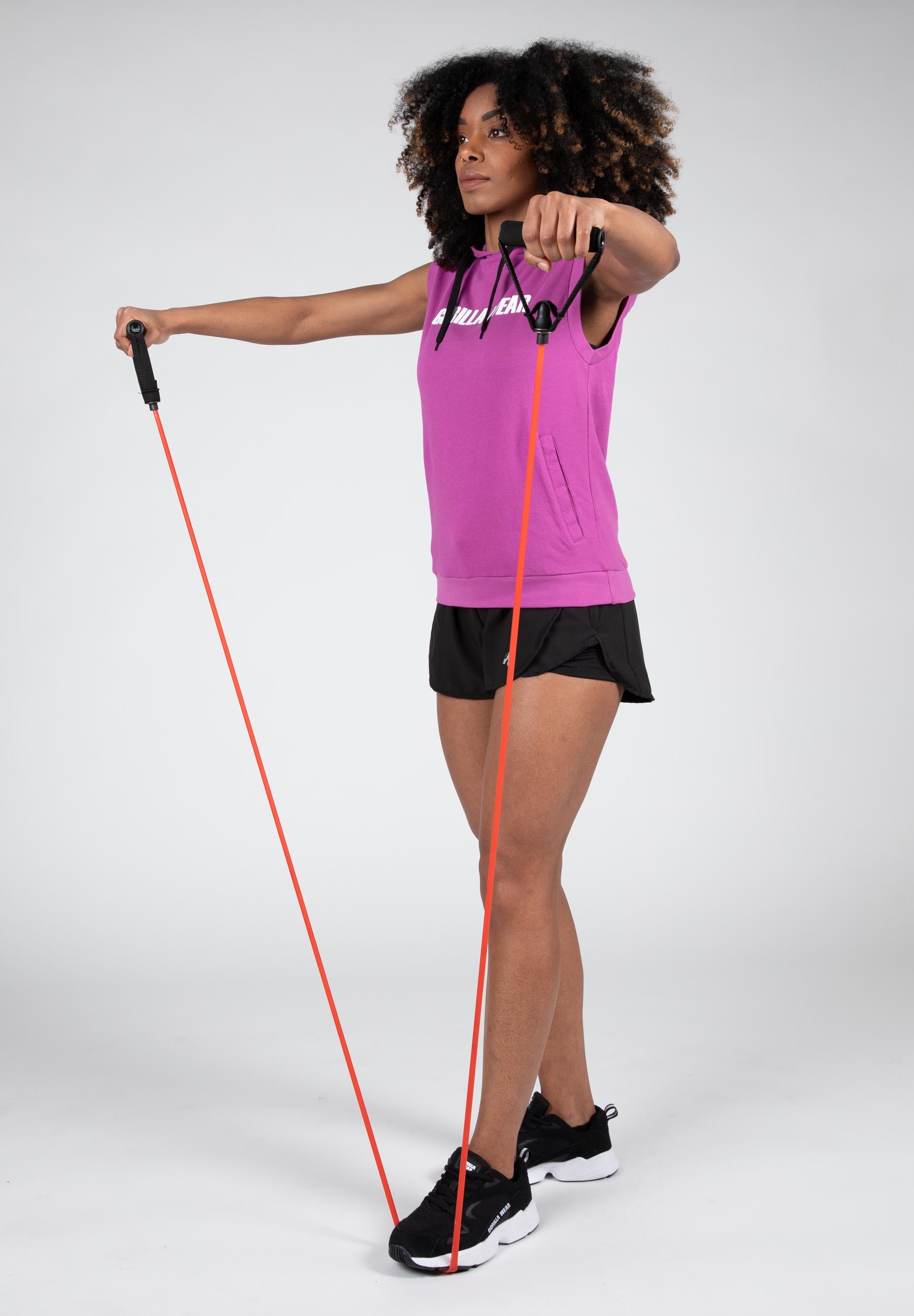 Virginia Sleeveless Hoodie har en ärmlös design som gör att du kan röra dig helt obehindrat för garanterad effektivitet i din träning såväl till vardags. Hoodien är tillverkad i en mjuk och behaglig mix av bomull/polyester med inslag av stretch. Huvans storlek kan enkelt justeras med dragsnöret och fickorna på magen erbjuder praktisk förvaring. Perfekt för olika aktiviteter både på och utanför gymmet. Finns i färgerna svart och fuchsia.